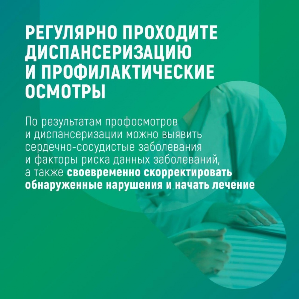 В карточках рассказываем о факторах риска, самих заболеваниях и их профилактике. Помните, чтобы выявить заболевания сердца и факторы риска, нужно регулярно проходить диспансеризацию и профосмотры.